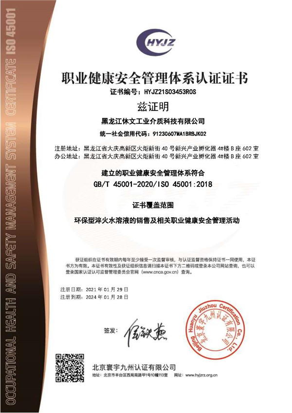 職業(yè)健康**管理體系認證證書